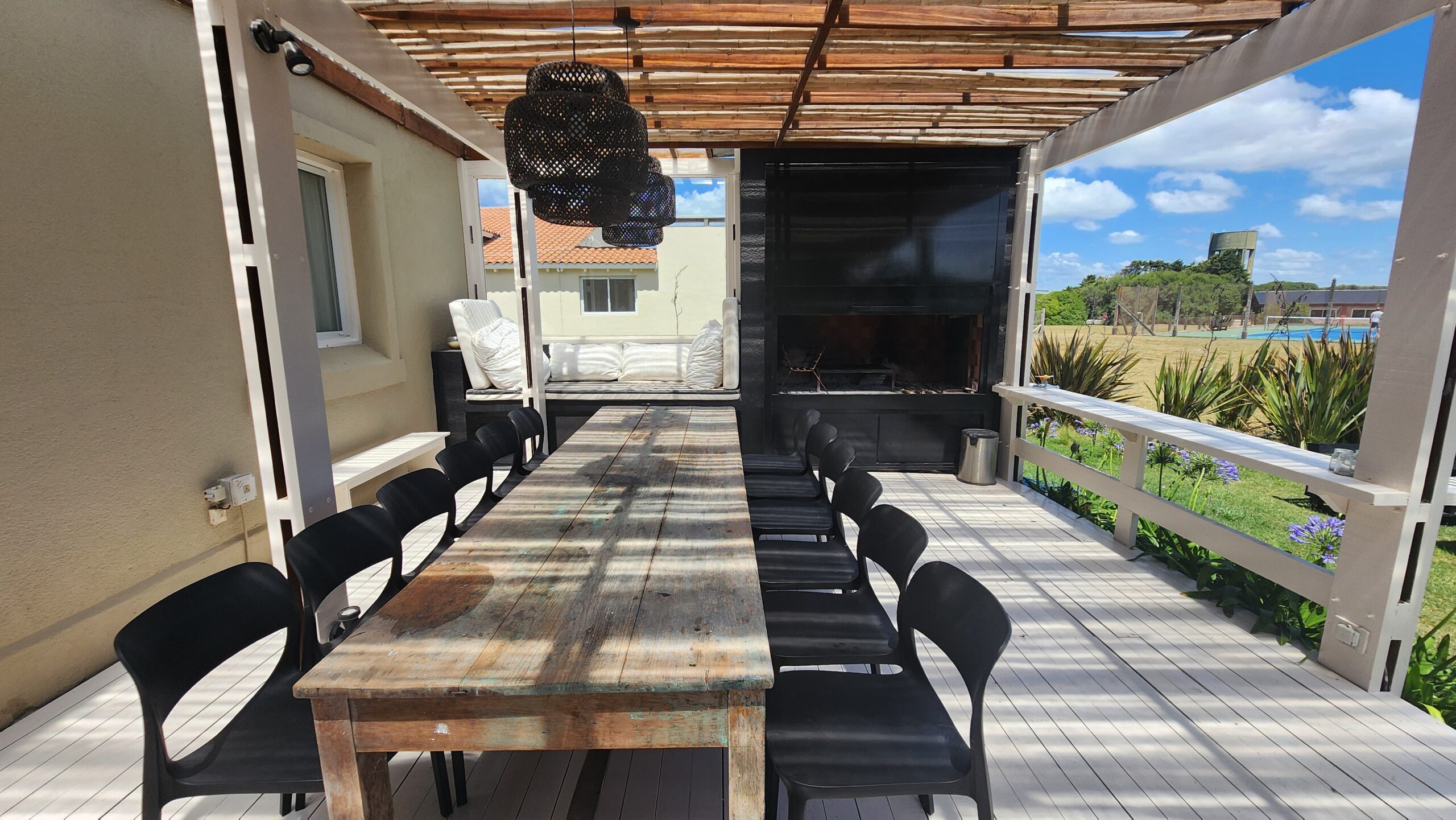 La Casa 4 cuenta con 5 habitaciones, una principal con sommier doble King Size y cuatro habitaciones con dos sommiers singles cada una. La galería con jardín y deck con parrilla, ideal para disfrutar un asado en familia.