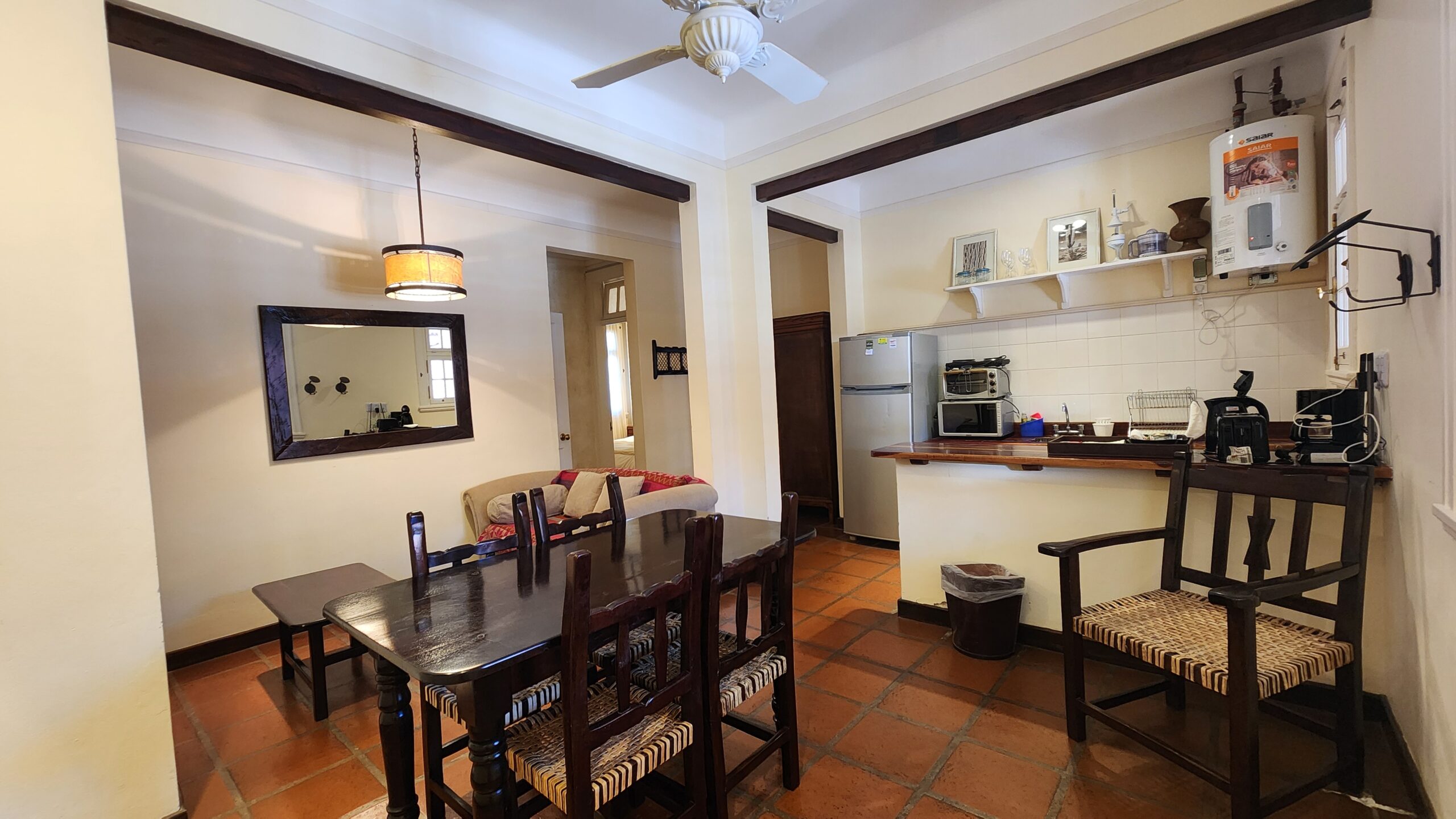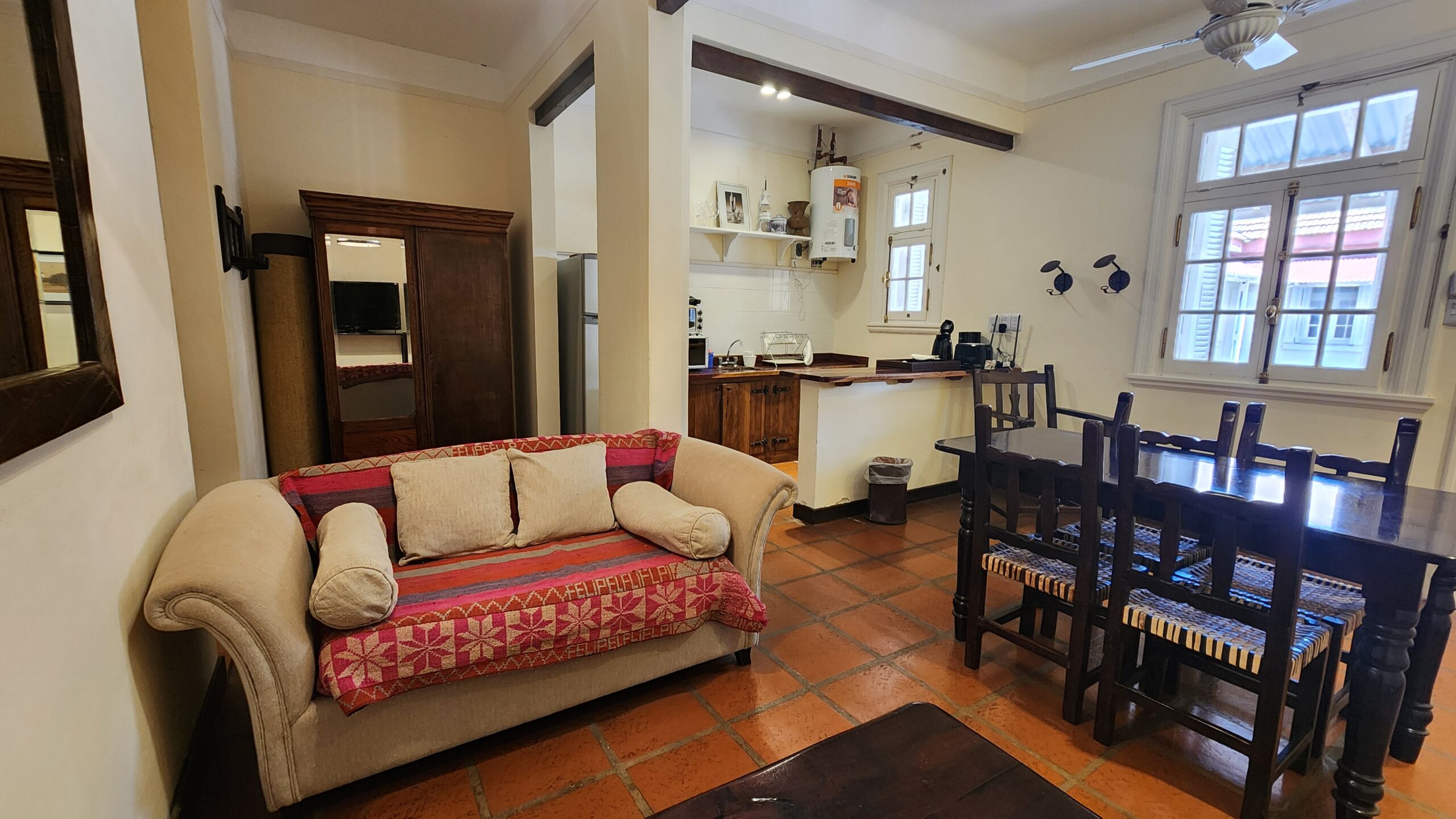 Departamento de 3 ambientes, dormitorio matrimonial y dormitorio con dos sommiers singles. Cuenta con star comedor, equipado con electrodomésticos.